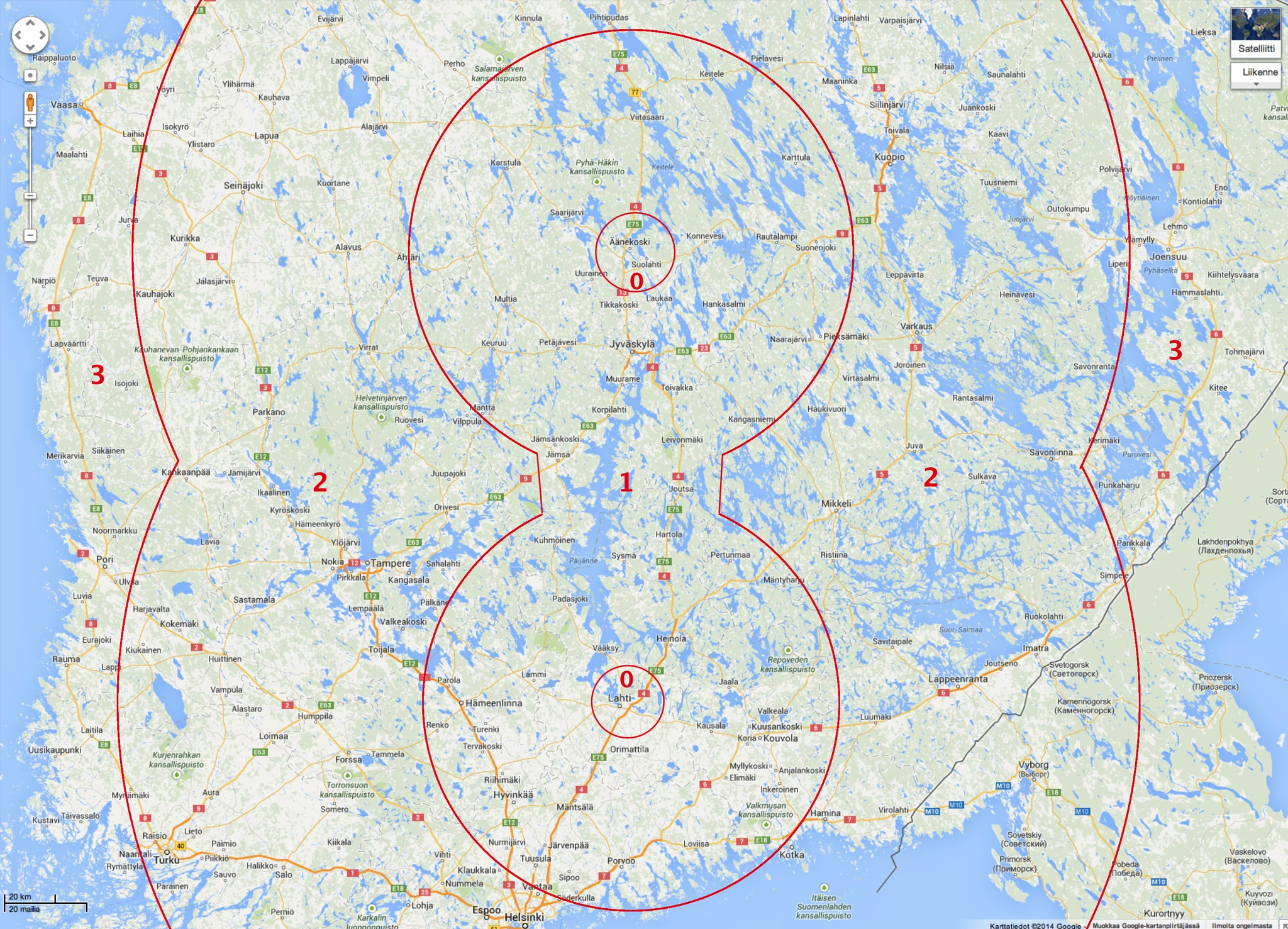 Äänekoskella tai Lahdessa olevat valitsevat vyöhykkeen 0.